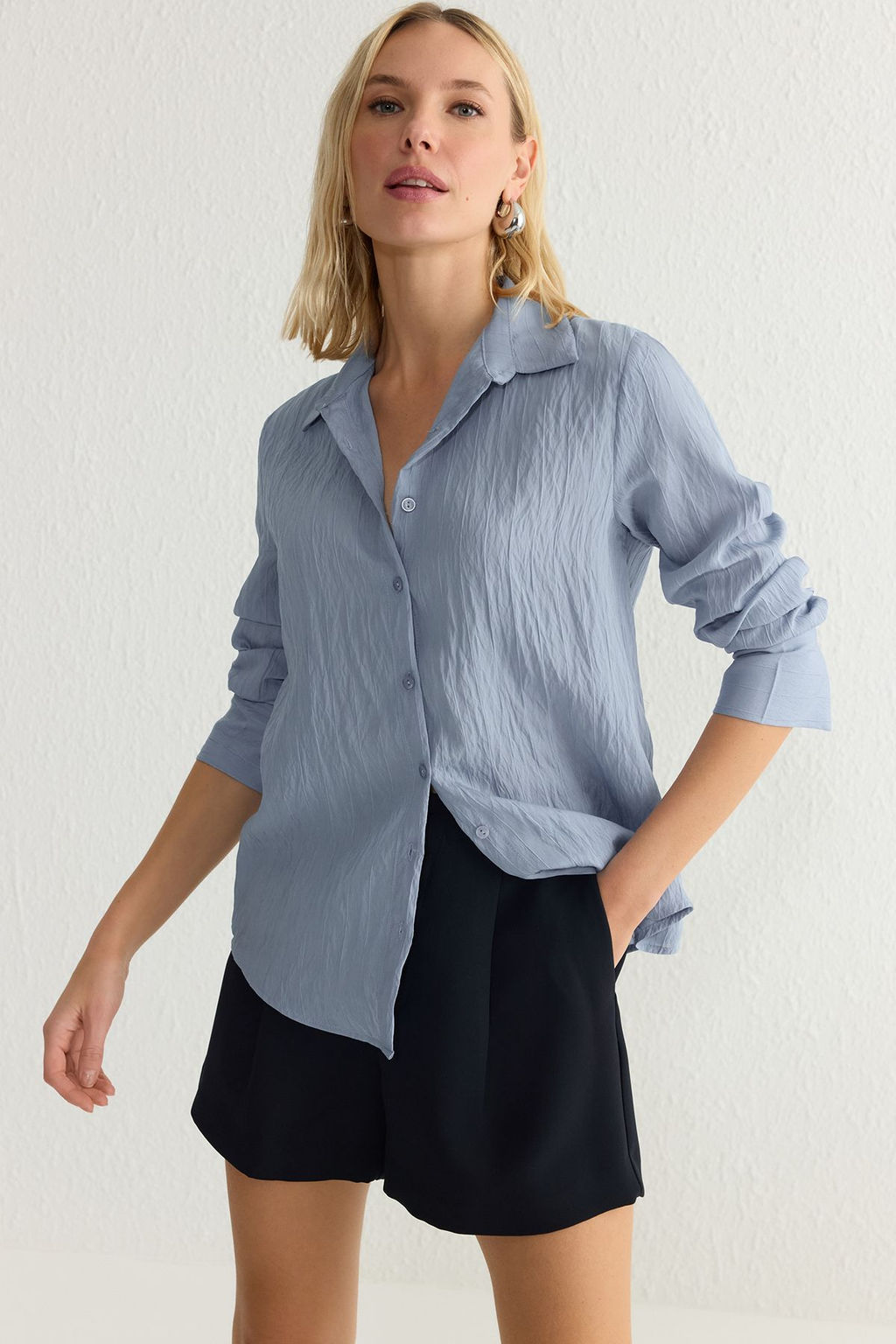 TRENDYOLMILLA Beyaz Cizgili Dokulu Kumas Regular Normal Kal?p Dokuma Gomlek TWOSS25GO00013