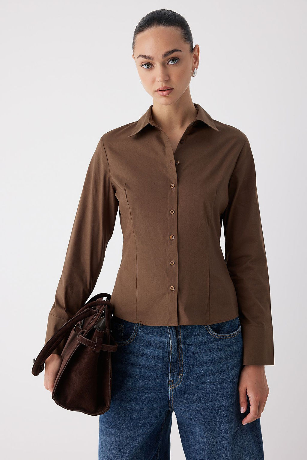 Beyaz Bele Oturan Fitted Dokuma Gomlek TWOAW26GO00022
