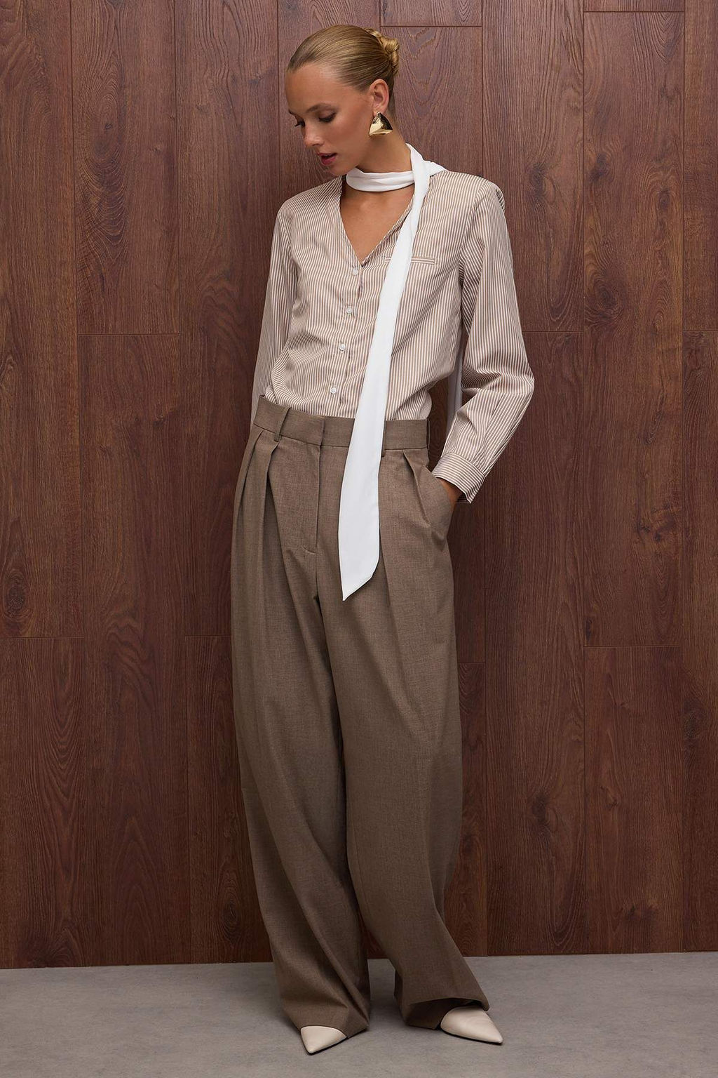 Bej Cizgili Sal Yaka Detayl? Gomlek TWOAW26GO00034
