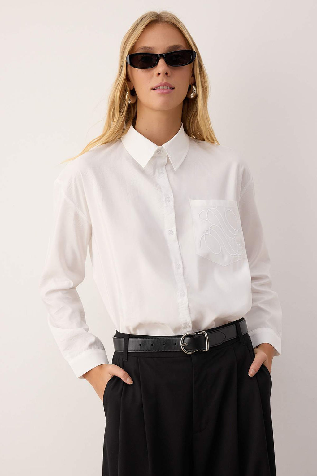 Lacivert Dokulu Nak?s Detayl? Gomlek TWOAW26GO00053