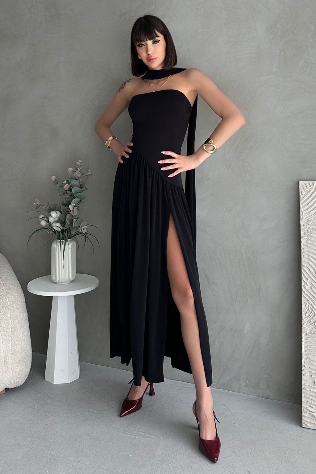 Bordo A Kesim Sal Detayl? Straplez Maxi S?k Abiye Gece Mezuniyet Elbisesi TPRSS25EL00317
