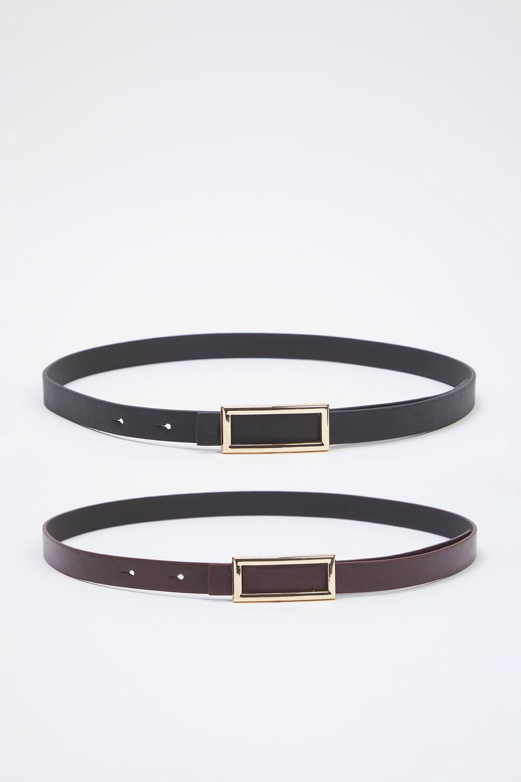 Trendyolmilla Siyah-Bordo 2li Paket Deri Gorunumlu Kad?n Kemer TWOSS25KE00015