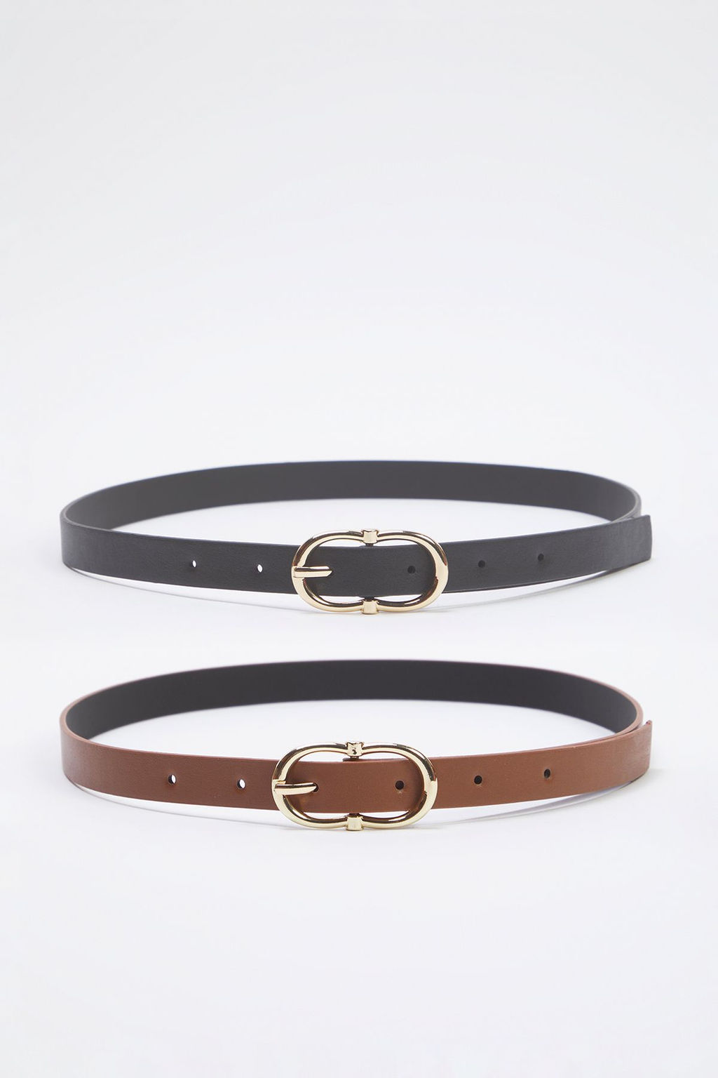 Trendyolmilla Siyah-Taba 2li Paket Deri Gorunumlu Kad?n Kemer TWOSS25KE00008