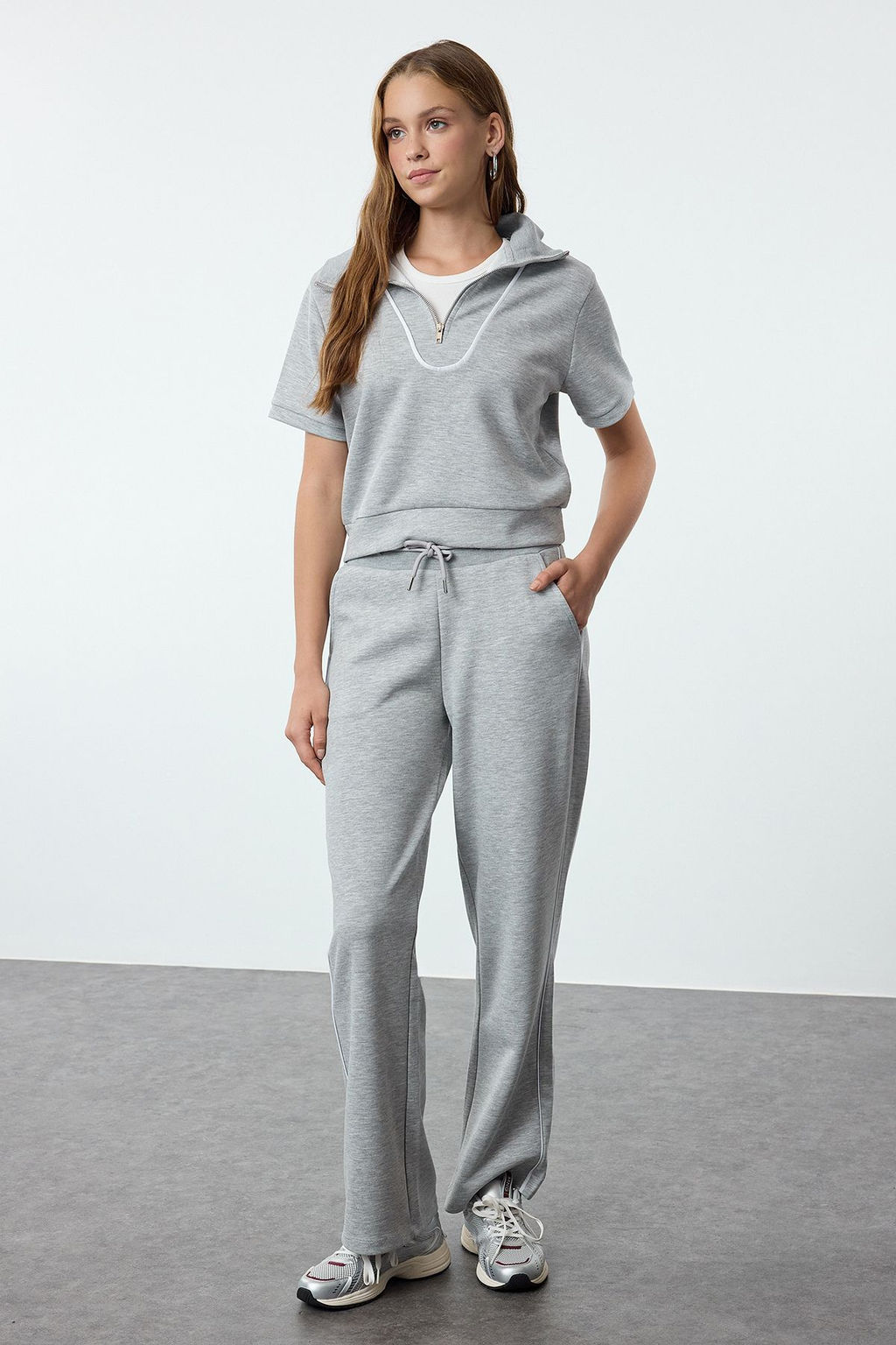 Gri Melanj Boru/Duz Paca Yumusak Kumasl? Orme Esofman Alt? PantolonTWOAW25EA00012