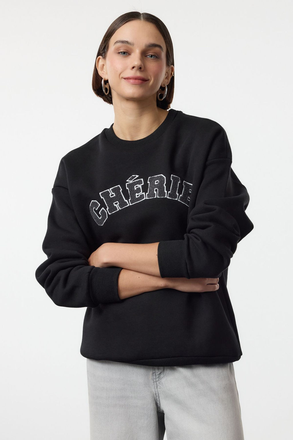 TRENDYOLMILLA Bordo Kal?n Ici Polarl? Oversize/Rahat Kesim Slogan Nak?sl? Orme Sweatshirt TWOAW25SW00030