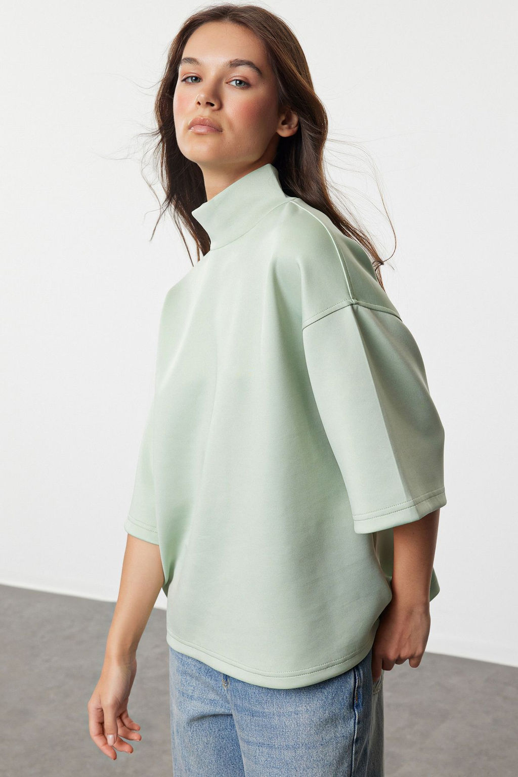 TRENDYOLMILLA Mint Oversize/Genis Kal?p Dik Yaka Truvakar Kol Orme Sweatshirt TWOAW25SW00016