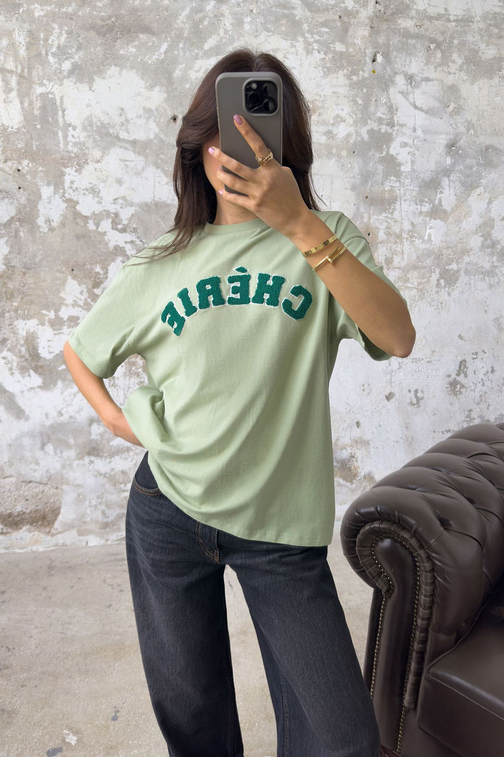 TRENDYOLMILLA Mint %100 Pamuk Oversize/Genis Kesim Slogan Nak?sl? Orme T-Shirt TWOSS25TS00161