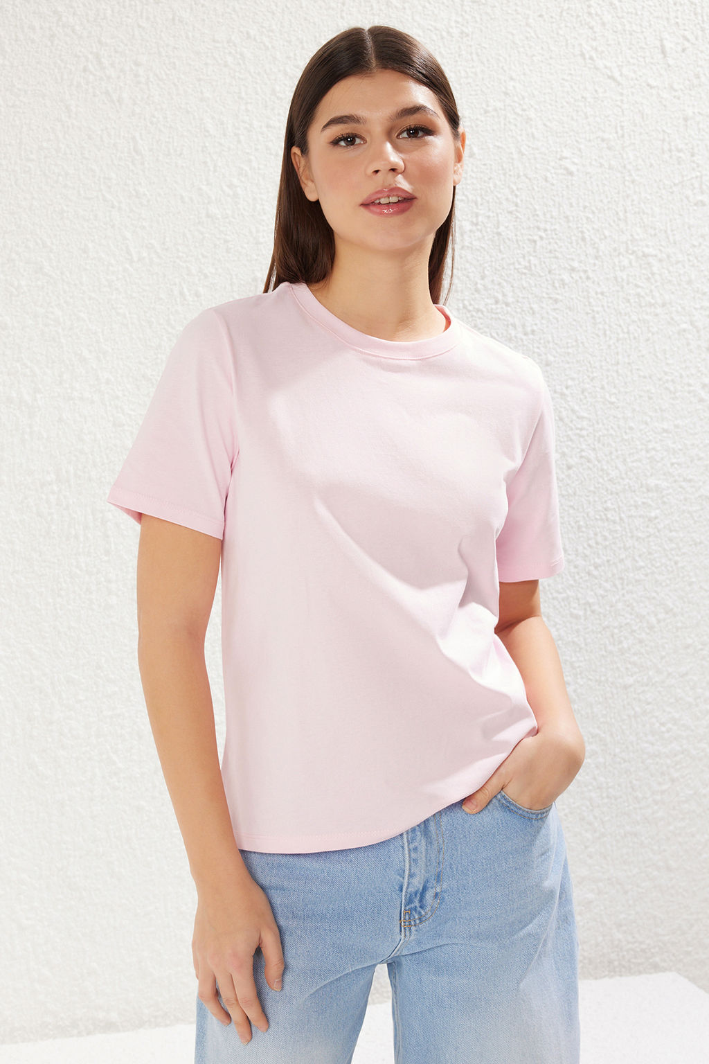 TRENDYOLMILLA Ekru %100 Pamuk Premium Basic Bisiklet Yaka Orme T-Shirt TWOSS23TS00042