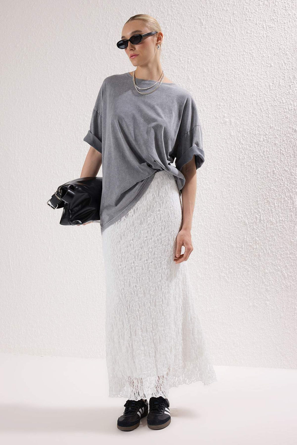 TRENDYOLMILLA Siyah Skater Dantel Midi Esnek Orme Etek TWOSS25ET00149