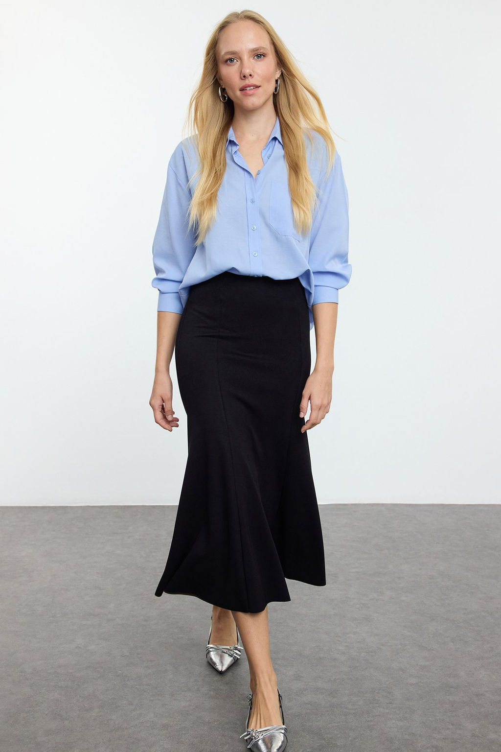 TRENDYOLMILLA Bordo Midi Esnek Orme Bal?k Etek TWOAW25ET00107