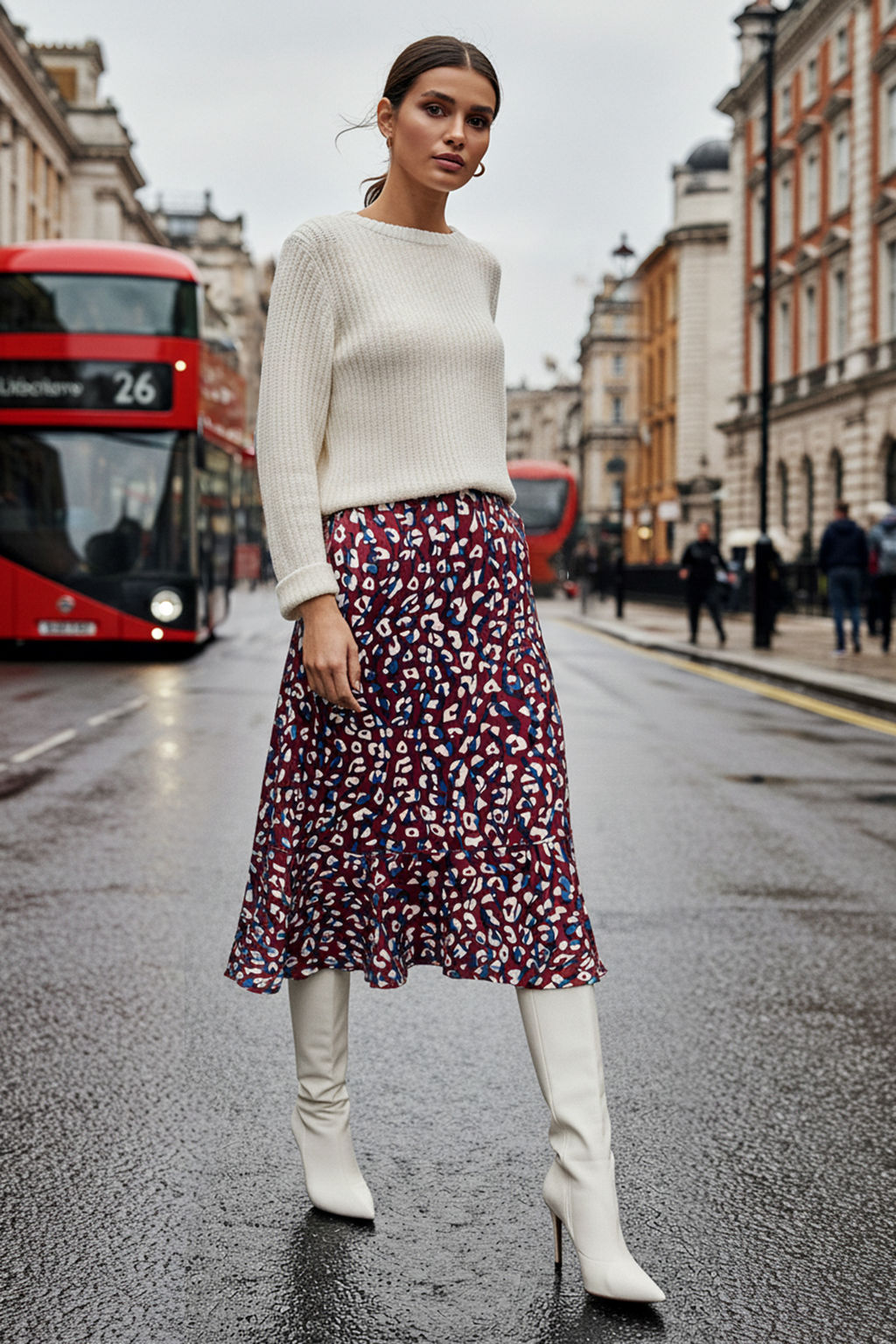 TRENDYOLMILLA Cok Renkli Ucu Volanl? Viskon Kumasl? Hayvan Desenli Midi Dokuma Etek TWOSS19FG0026