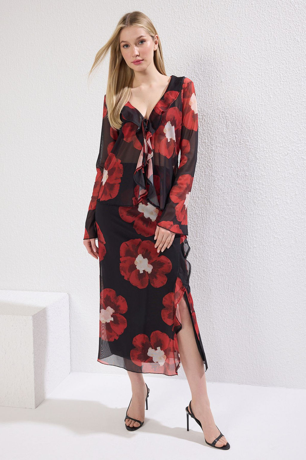 TRENDYOLMILLA Cok Renkli Cicek Bask?l? F?rf?r Detayl? Tul Kalem Esnek Etek TWOSS25ET00024