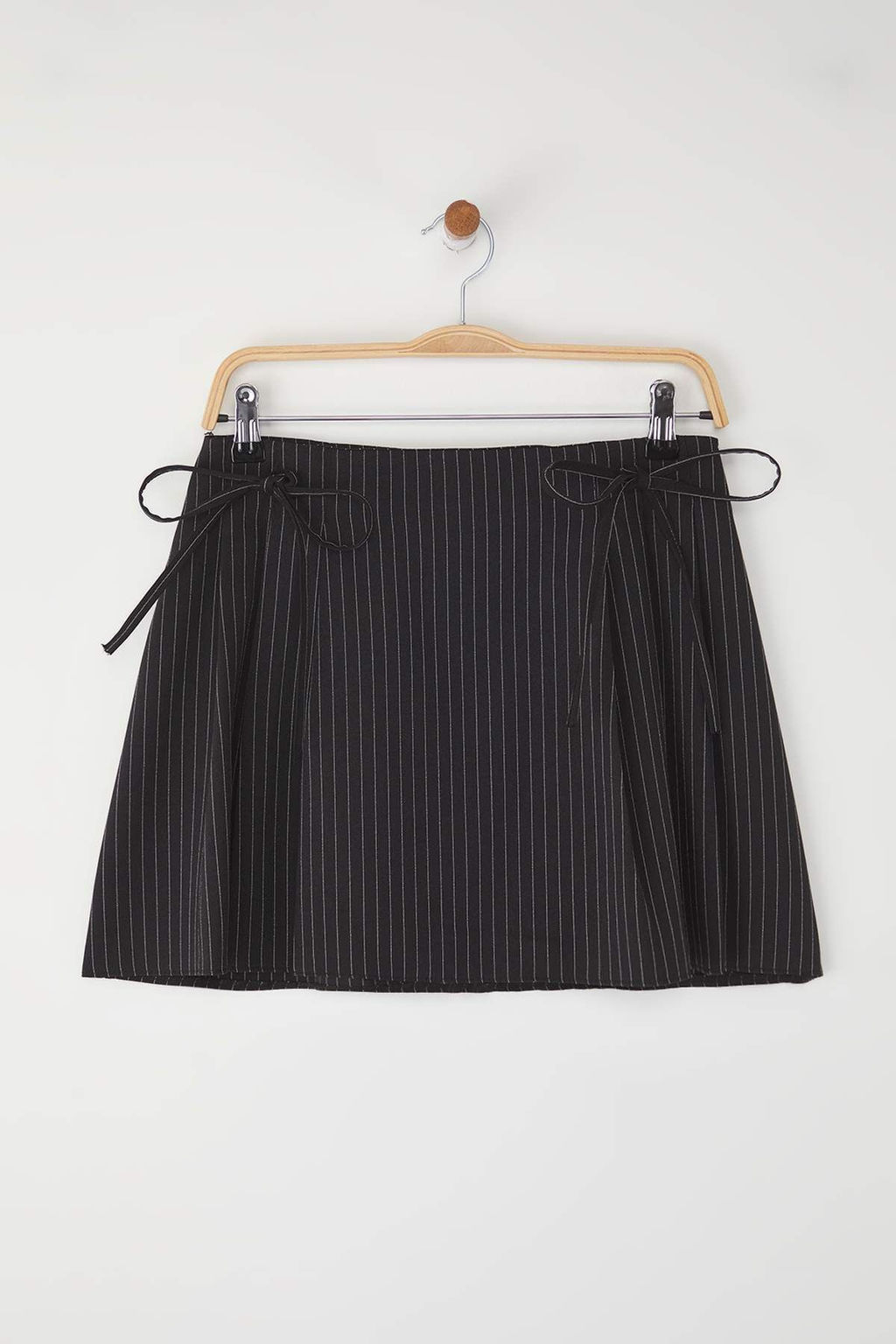 Trendyolmilla Koyu Antrasit Plise ve Kurdele Detayl? Mini Boy Dokuma Etek TEDAW25ET00012