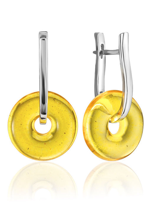 Оригинальные серьги Донат с лимонным янтарём