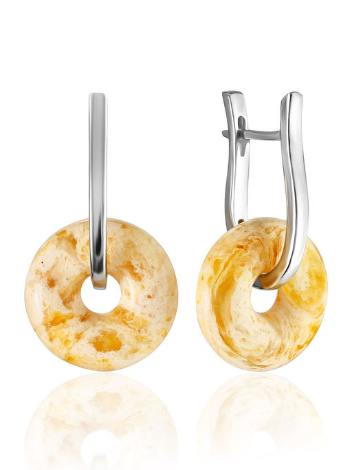 Оригинальные серьги Донат с формованным янтарём с пёстрой текстурой