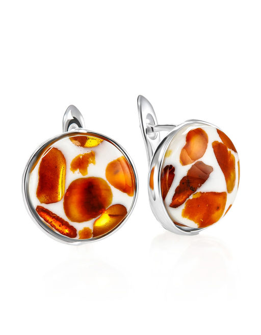 Круглые серьги Далматин с янтарной мозаикой в белом цвете