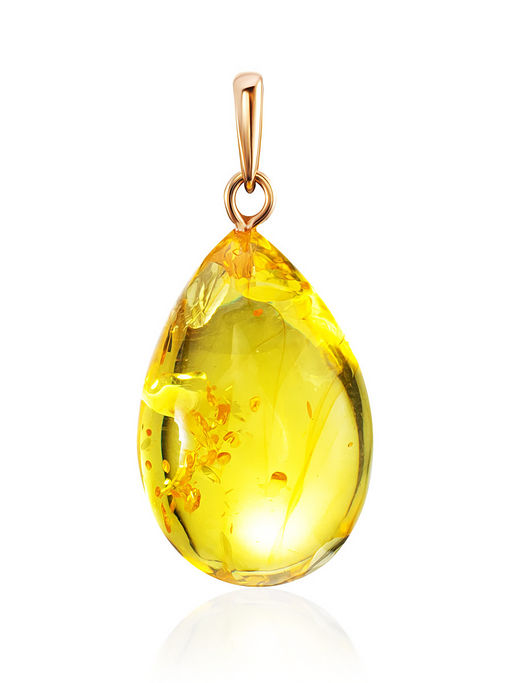 Красивый кулон-капелька из лимонного янтаря с золочением Паланга