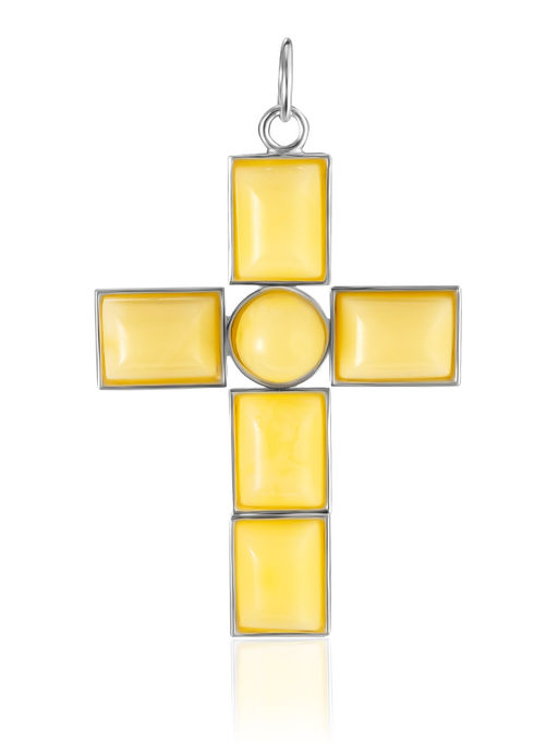Крестик, украшенный вставками из натурального янтаря ярко-медового цвета