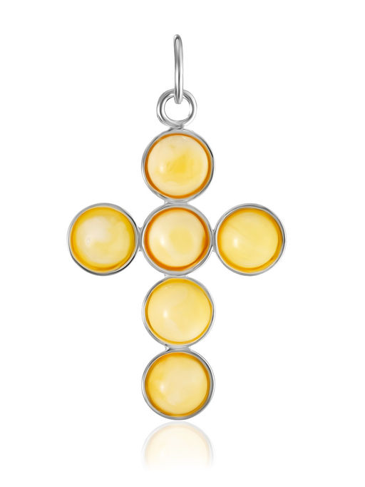 Небольшой изящный крестик с янтарными вставками нежно-медового цвета