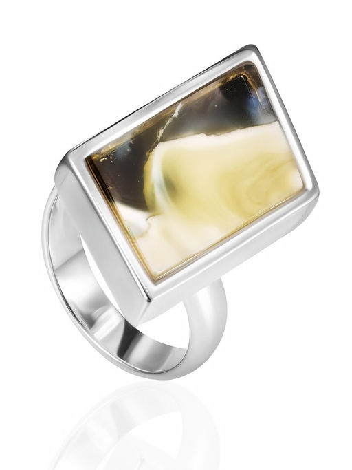 Стильное кольцо необычной формы с натуральным янтарём Palazzo