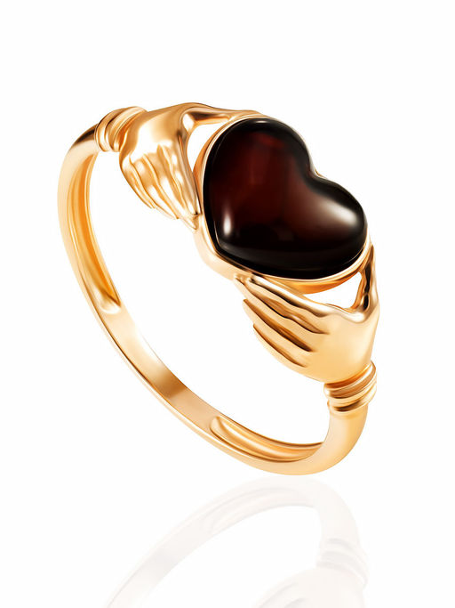 Кольцо в романтическом дизайне с вишнёвым янтарём Объятия