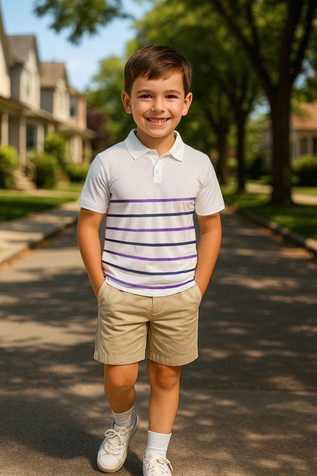 Beyaz Erkek Cocuk %100 Pamuk Cizgili Regular Kal?p Polo Yaka Orme T-Shirt TKDSS25TS00079