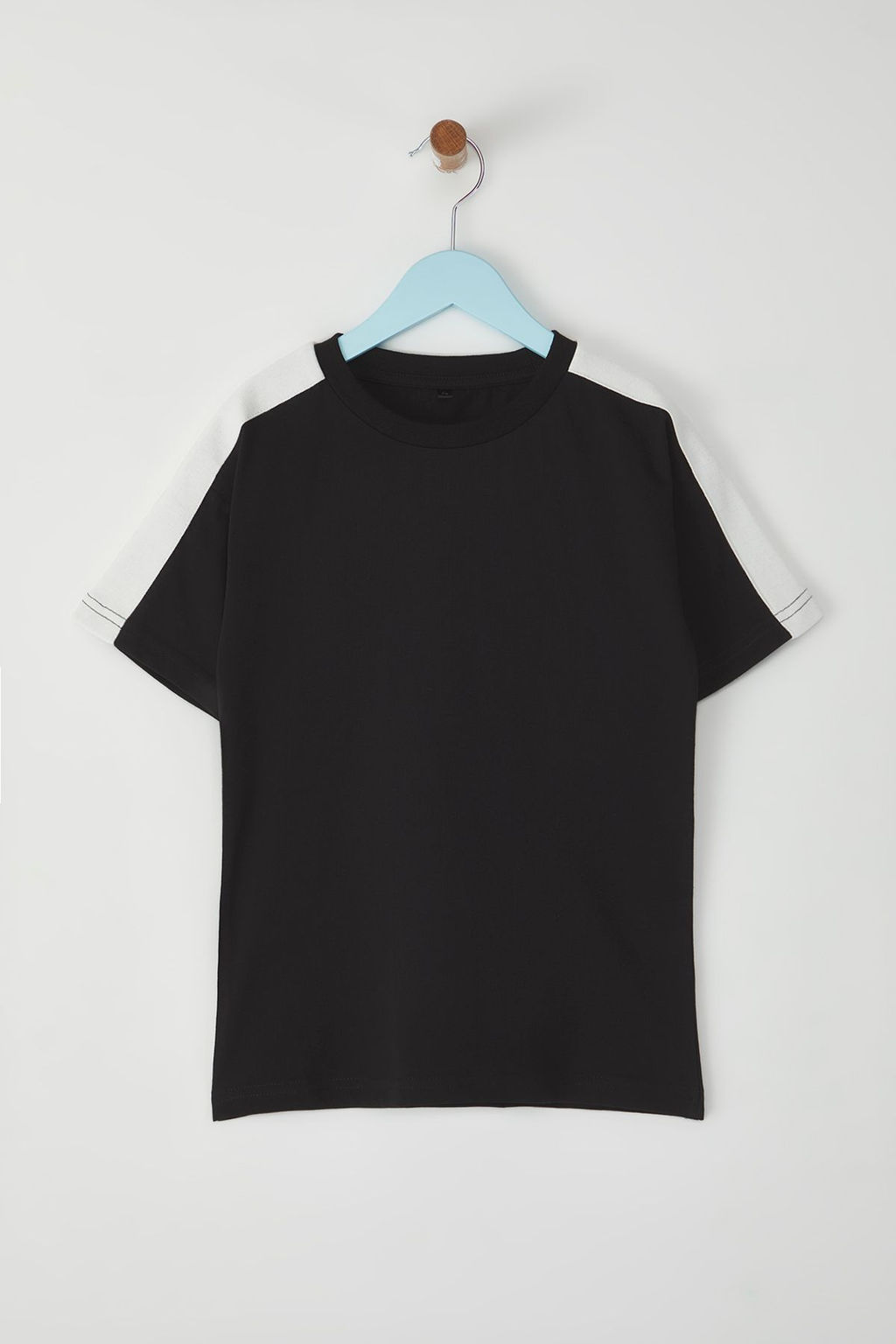 Siyah %100 Pamuk Renk Bloklu Regular/Normal Kal?p K?sa Kol Orme T-Shirt TKDSS25TS00065