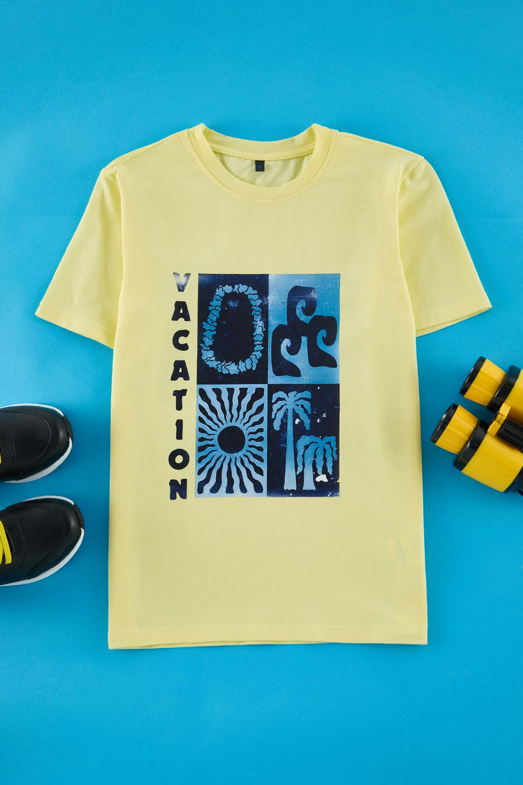 Sar? Erkek Cocuk PamukluSlogan Bask?l? Regular/Normal Kal?p K?sa Kol Orme T-Shirt TKDSS25TS00058