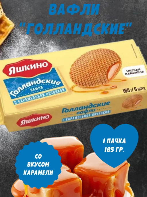 Яшкино, вафли Голландские с карамельной начинкой, 165 г