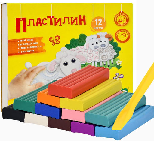 Пластилин 12 цветов, 180 г, со стеком Каляка-Маляка 3+