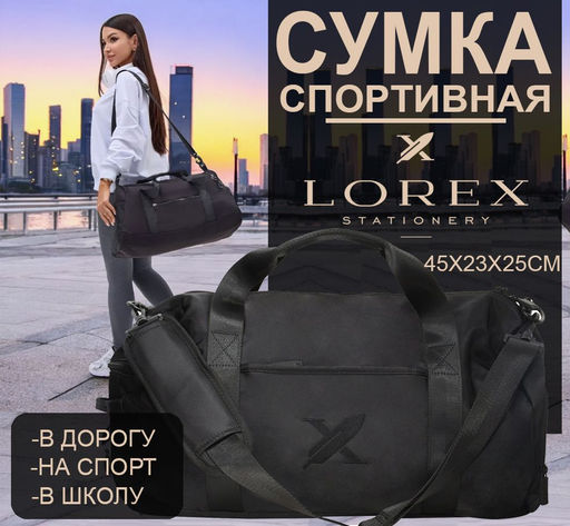 Сумка спортивная LOREX SPORT BAG OUTBOUNDS TOTAL BLACK 45x23x25 см черный твилл, универсальная