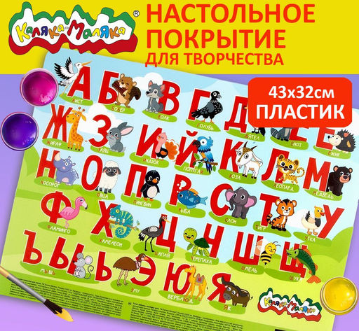 Настольное покрытие для детского творчества АЛФАВИТ 43х32 см пластик зеленый с принтом Каляка-Маляка