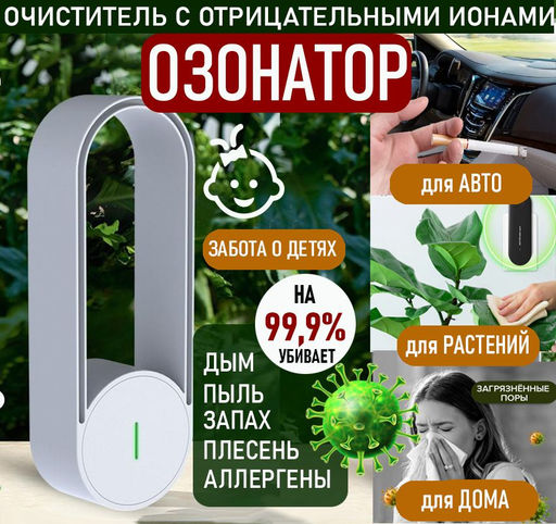 Озонатор , ионизатор освежитель помещений и автомобилей, микробы,сигаретный дым,генератор ионов , до 10м?,