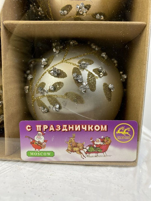 Новогоднее украшение шары со стразами 7см, 6шт в подарочной упаковке