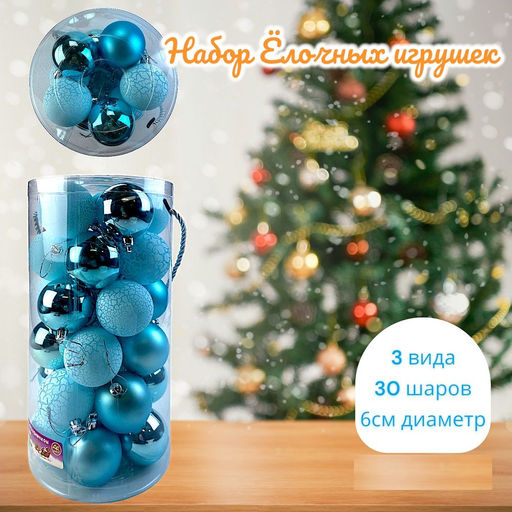 Набор новогодних украшений на ёлку "ШАРИКИ" бирюзовые,30шт. d-6см