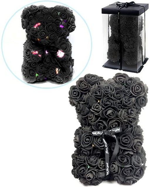 Мишка из роз светящийся в подарочной коробке, 25 см