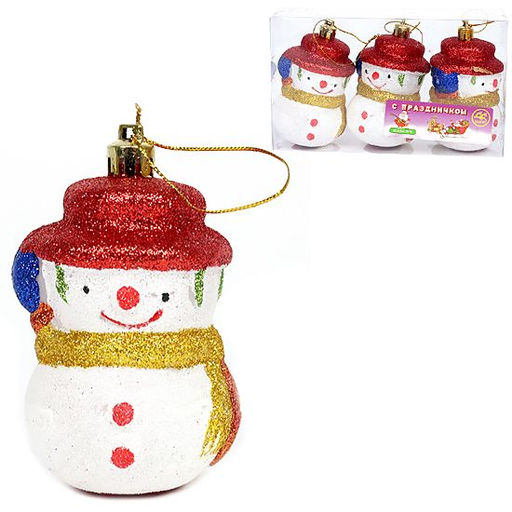 Набор елочных игрушек Снеговик красный, 3 шт