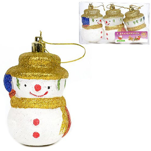 Набор елочных игрушек Снеговик золотой, 3 шт