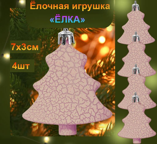 Набор ёлочных украшений Ёлка, 4шт,зеленый ,7х3см
