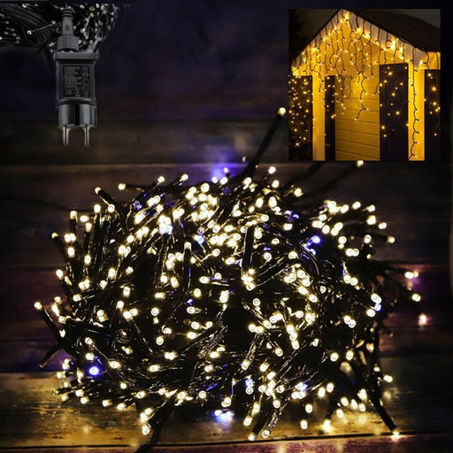 Гирлянда-мишура светодиодная двухцветная, теплый белый/синий цвет (1500 ламп, 9 метров)