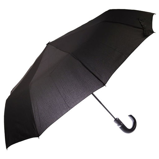 Зонт Arman U718 полуавтоматический чёрный ,ЭКО кожаная ручка крюк