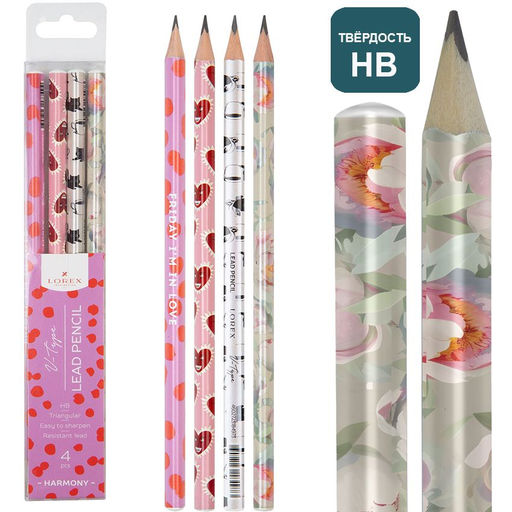 Набор чернографитных карандашей деревянные LOREX V-TYPE HARMONY 4 шт НВ заточенные, трехгранные,
