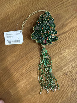 Игрушка елочная, 17 см, бисер/полифилл, зеленая, Елка с кисточкой, New year