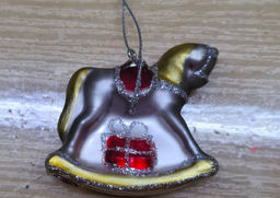 Игрушка елочная, 4 см, стекло, серебристая, Лошадка-качалка, Bright horse