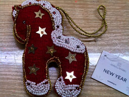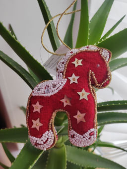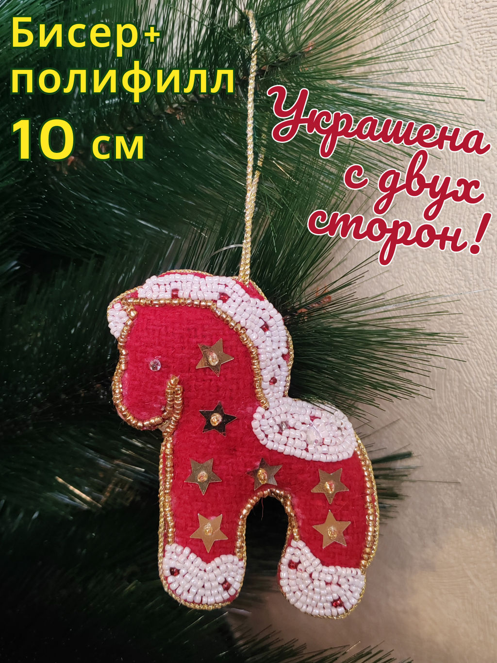 Игрушка елочная, 10 см, бисер/полифилл, красно-белая, Конь, New year