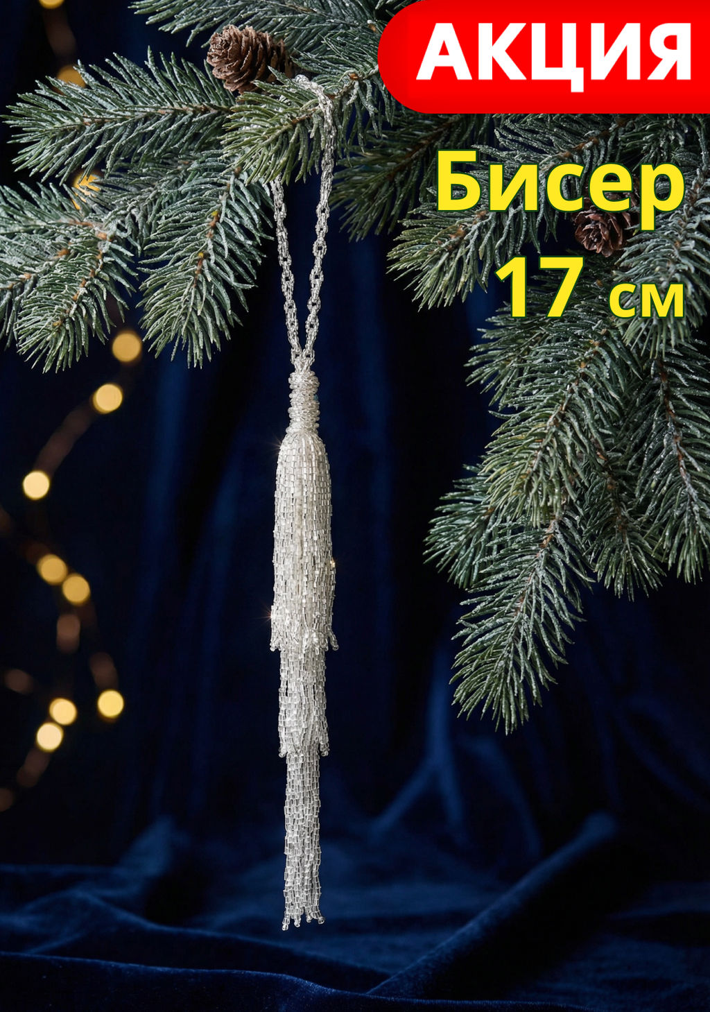 Игрушка елочная, 10 см, бисер, серебристая, Кисточка, New year