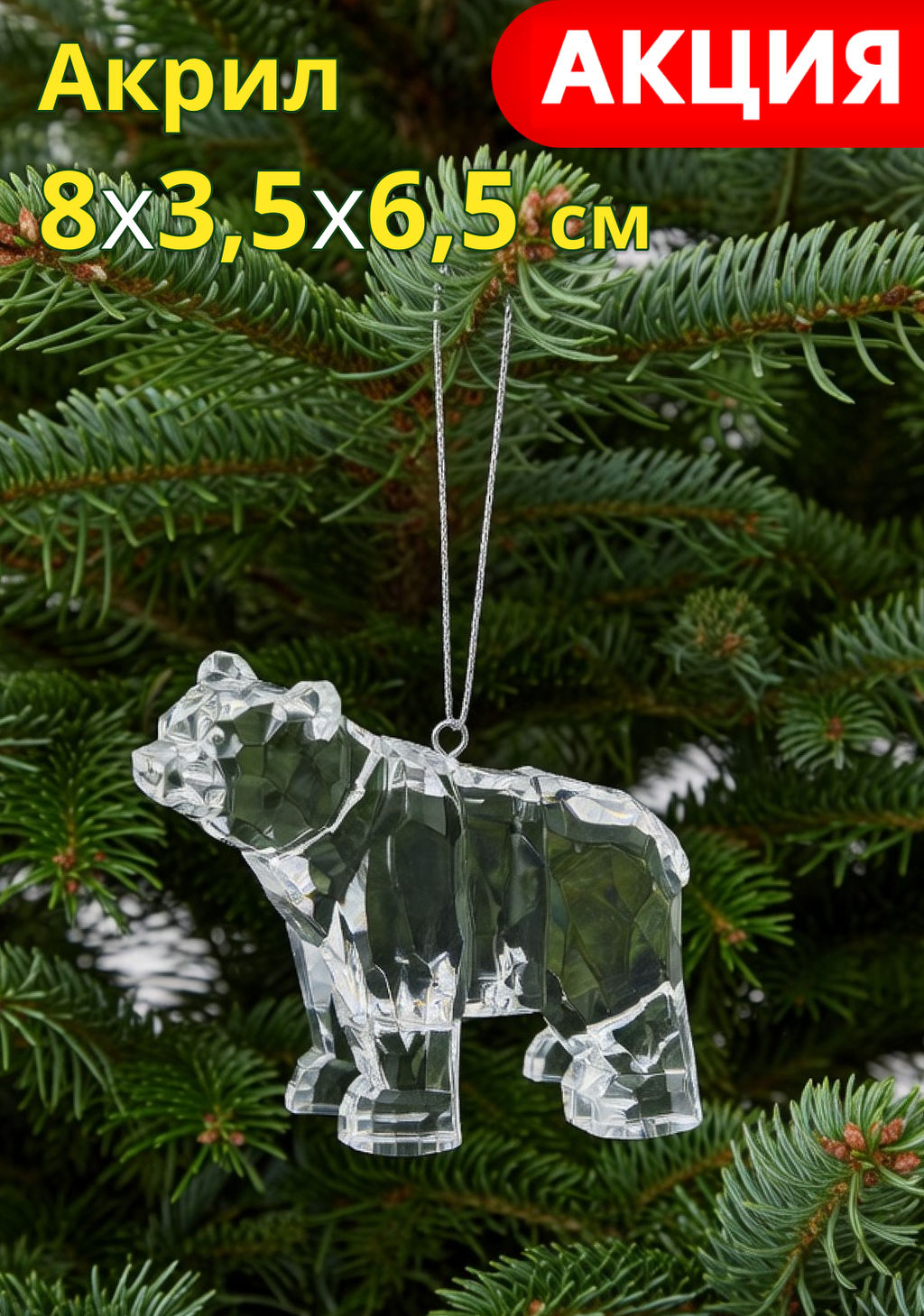 Игрушка елочная, 8 см, акрил, прозрачный, Медведь, Event
