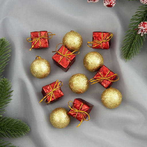 Цена за 3 шт. Ёлочные игрушки Сочельник, новогодние, набор 12 шт. (6 шаров, 6 подарков), МИКС