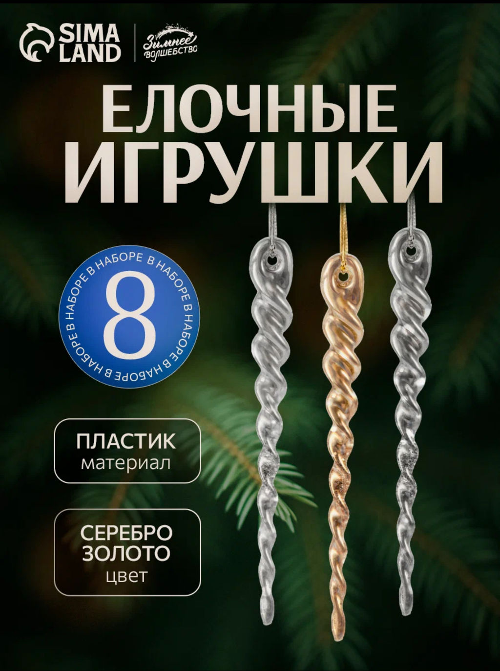 Цена за 2 шт. Ёлочные игрушки набор 8 шт. Витые сосульки, 12 см, серебро/золото