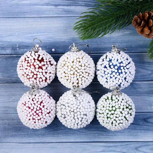 Цена за 2 шт. Ёлочные игрушки Снежок, шары новогодние, набор d=4.5 см, 6 шт., МИКС